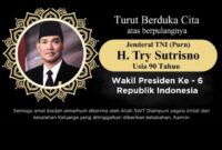 Cybermabespolri.com Jakarta,-Wakil Presiden Ke-6 Republik Indonesia Try Sutrisno wafat di Rumah Sakit Pusat Angkatan Darat (RSPAD) Gatot Soebroto, Jakarta, pada Senin pagi sekitar pukul…