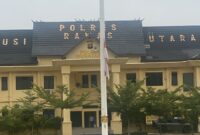 Cybermabespolri.com Muratara,-Sumatera Selatan Ada yang berbeda di depan Mapolres Musi Rawas Utara dan Polsek Jajaran dimana bendera merah putih berkibar hanya setengah tiang Pengibaran…