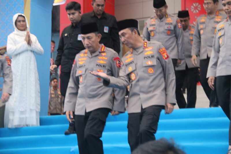 Kapolri didampingi Kapolda Sumsel Irjen Pol Dr. Sandi Nugroho, S.I.K., S.H., M.Hum., sejak tiba di halaman Mapolda Sumsel hingga rangkaian kegiatan yang berlangsung di Masjid Assa’adah Polda Sumsel mulai pukul 17.00 WIB.