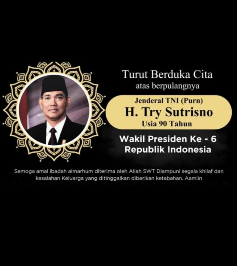 Jakarta,-Wakil Presiden Ke-6 Republik Indonesia Try Sutrisno wafat di Rumah Sakit Pusat Angkatan Darat (RSPAD) Gatot Soebroto, Jakarta, pada Senin pagi sekitar pukul 07.00 WIB.