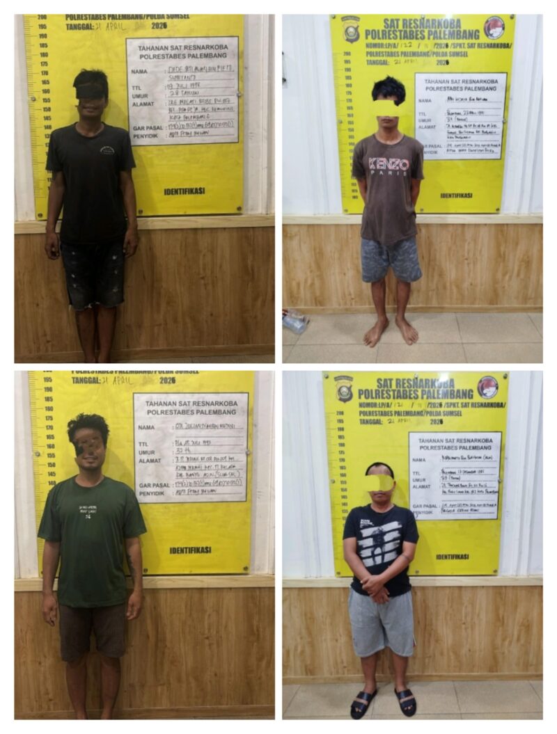 Polrestabes Palembang Ringkus Empat Pengedar Narkoba di Tiga Lokasi Berbeda