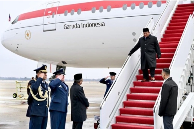 Cybermabespolri.com,Jakarta – Presiden Republik Indonesia Prabowo Subianto tiba di Amerika Serikat (AS), Selasa (17/02/2026) pukul 11.55 waktu setempat. Pesawat Garuda Indonesia-1 yang membawa Presiden dan rombongan mendarat di Pangkalan Militer Andrews, Washington DC.