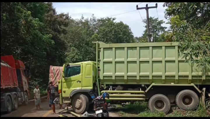 Insiden beruntun ini melibatkan tiga kendaraan: satu unit Tronton Hino bernopol BH 8936 YU, satu unit Dump Truck Tronton Hino bernopol BK 8698 MP, dan satu sepeda motor Kawasaki KLX tanpa plat nomor.